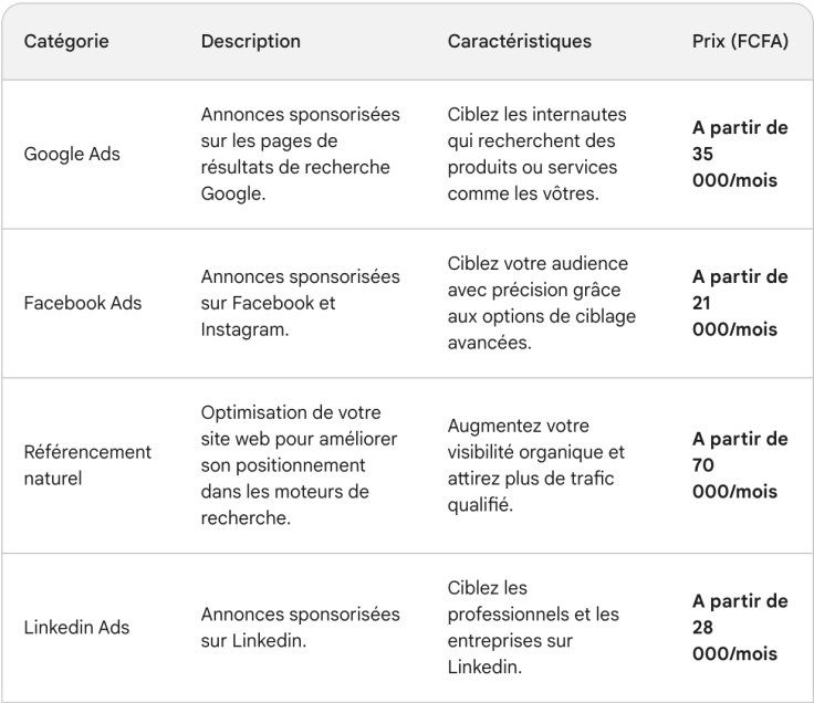 Google ads, Facebook ads, SEO ads, Référencement, Leads